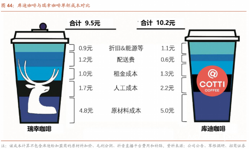 招商证券发布的咖啡行业深度报告,推算了库迪和瑞幸的单杯成本,按照单杯9.9元的价格、瑞幸咖啡单店500 杯、库迪咖啡 300-400杯的模型测算,瑞幸的单杯成本约为9.5元中国星配资,库迪约为10.2元。如果算上品牌自己的补贴以及渠道优惠手段,库迪在店均杯量是240-320杯的情况下,实际的单杯成本可能超过了11元。不过,2023年5月,库迪咖啡的首席策略官李颖波公开表示,库迪一杯咖啡的成本不会超过9块钱。