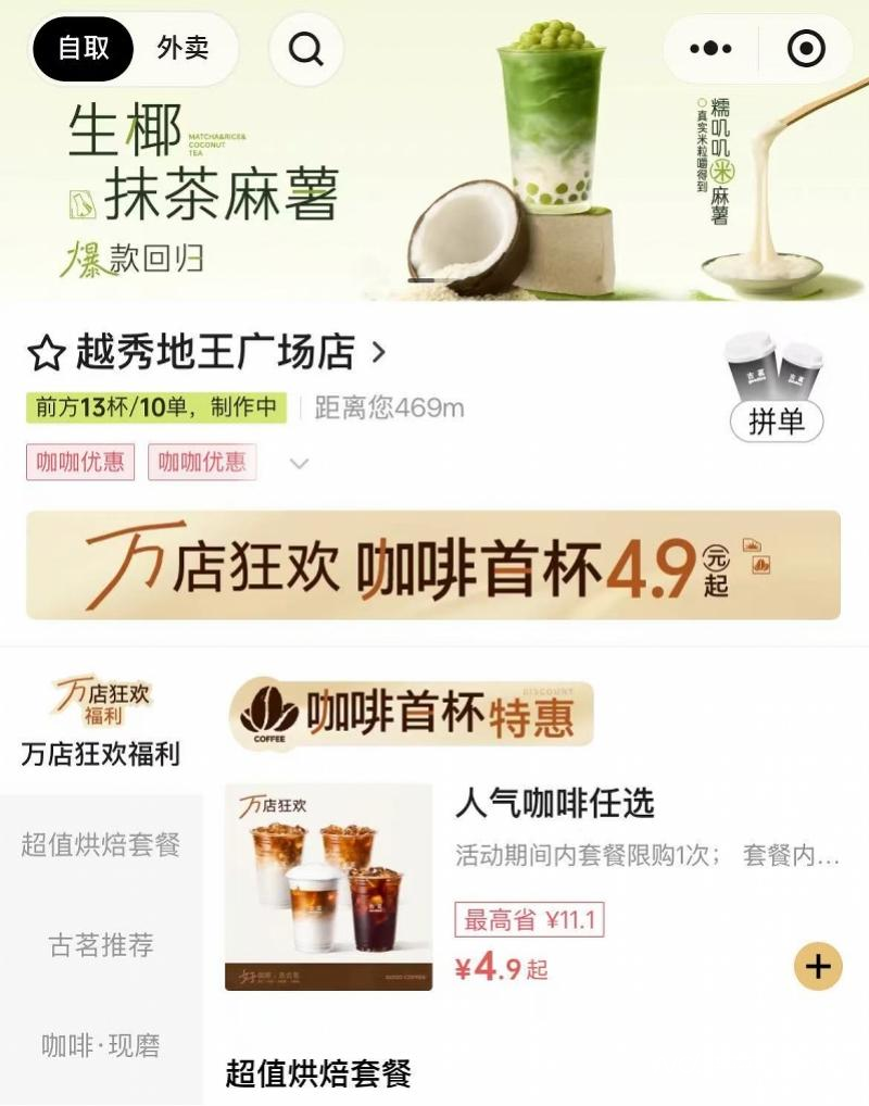 而双重“价格战”叠加之下,有奶茶用户点外卖的时候也会顺手下单一杯咖啡。在外卖“补贴大战”中薅了不少羊毛的小颖告诉南都记者,自从古茗官宣吴彦祖成为其咖啡代言人后,她就注意到了古茗上线的各种咖啡,工作日有时候会在同事的奶茶单里拼一杯。“一杯生椰拿铁也就6.9元,大部分都在10元左右,比我自己买咖啡泡划算多了,刚好拿来提神”,她表示。