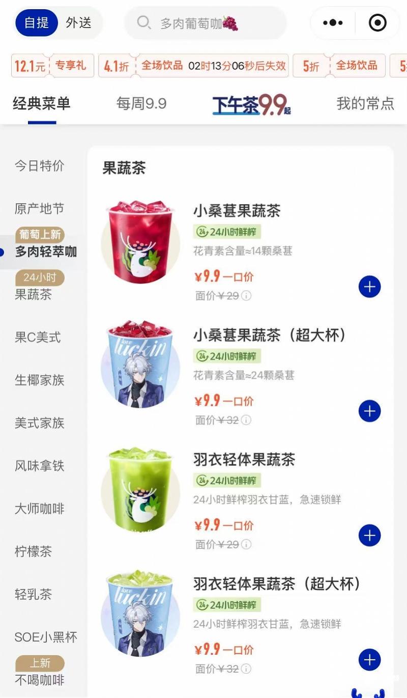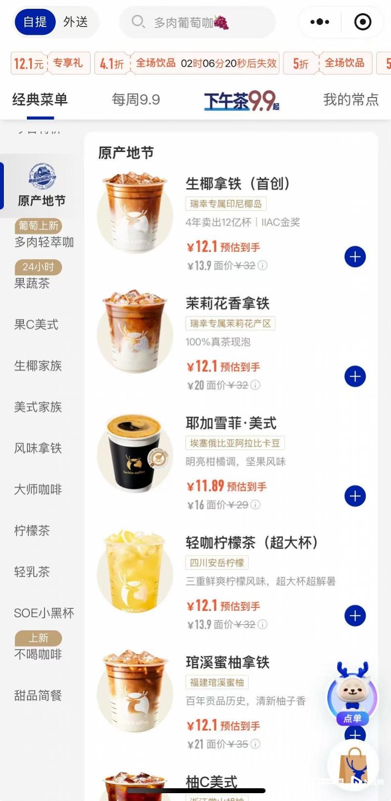 以有财报数据的瑞幸为例,南都记者打开其小程序发现,“9.9元”的产品除了咖啡还包含果蔬茶、冰茶、柠檬水等,后者的原材料成本与咖啡有差异。同时,南都记者不完全统计,瑞幸9.9元以上的产品超过60款,而这些饮品也会吸引相当数量的消费者下单,其单杯利润肯定高于9.9元的单杯咖啡。