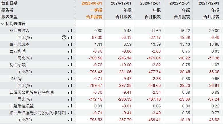 2021年以来,*ST银江经营业绩长期承压。今年一季度,*ST银江营业总收入同比下滑87%,归母净利润同比减少772.16%。