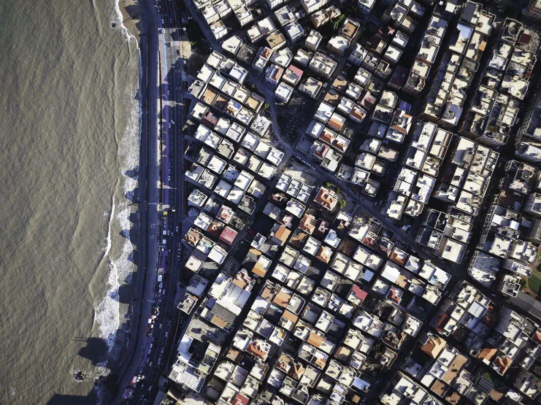 ▌从空中俯瞰,鳞次栉比的屋顶和日落的光辉交相呼应,非常壮观。