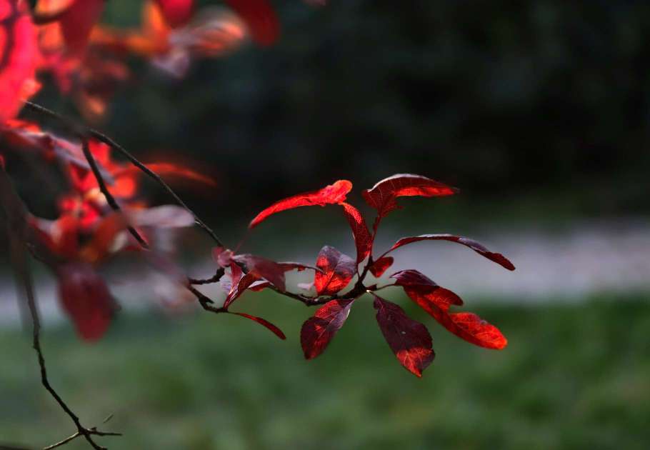 秋天的紫叶李以其绚丽叶色成为自然诗篇,优美句子如“紫色叶飘扬,秋风瑟瑟凉”和“片片红叶写满秋意”生动描绘其魅力。
